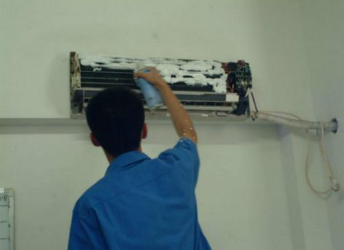 | 广德空调维修师傅给广德用户上门维修清洗空调。 |
